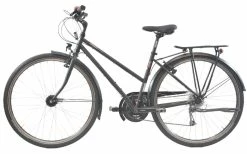 Le FROG 62, son cadre aluminium, ses freins à patins, ses roues en 24″ et ses accessoires.