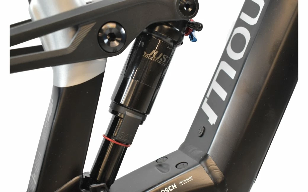 La fourche suspendue Marzocchi Bomber Z1 couplée à l’amortisseur arrière Moustache Magic Grip Control, confèrent 150 mm de débattement pour gommer les aspérités du terrain avec une efficacité bluffante, sans avoir besoin d’être un pro du réglage de suspension.