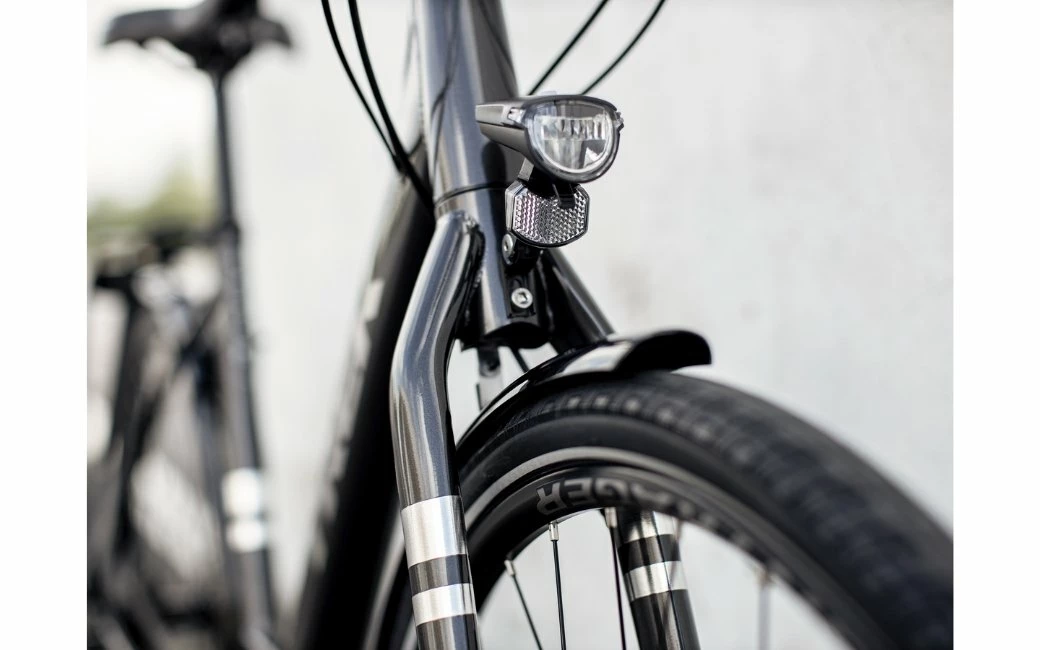 Il possède un cadre aluminium léger et ouvert qui permet de monter sur le vélo et d’en descendre aisément, des freins à disque qui freineront par tous les temps et de larges pneus pour davantage de stabilité. Il est livré avec une multitude de fonctions utiles pour les sorties de tous les jours : lumières, garde-boue et un porte-bagage arrière compatible MIK.