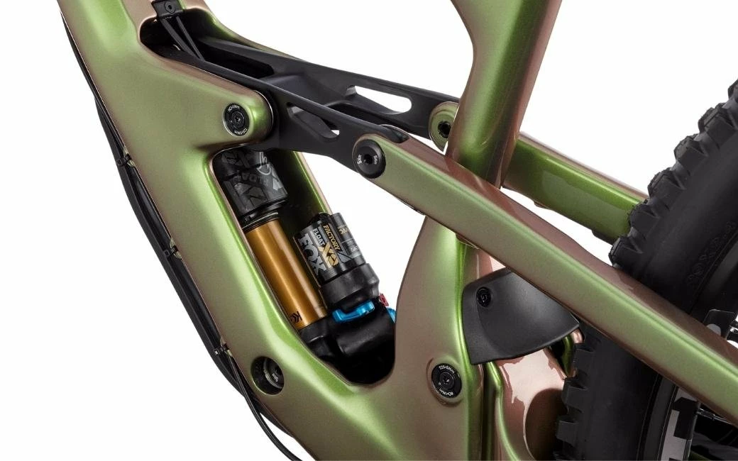 L’amortisseur s’intègre élégamment dans le tube diagonal à deux longerons, tout en maintenant le centre de gravité du vélo le plus bas possible. Une stabilité incroyable, des changements de direction instantanés, et un look affirmé qui fait tourner les têtes.